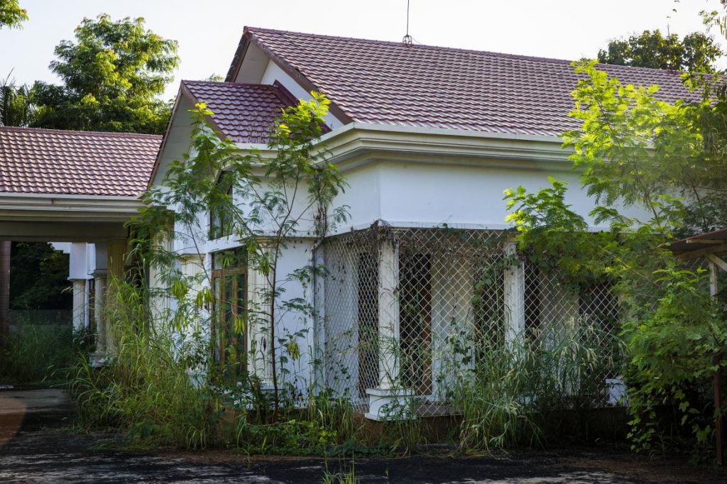 ခြံထဲရှိမြက်ပင်ရှည်များကြောင့် အိမ်အလွတ်များနှင့်လူနေထိုင်လျက်ရှိသော အိမ်များမှာ အပြင်မှကြည့်ပါက ကွာဟမှုသိပ်မရှိလှပါ။ ဓာတ်ပုံ-ခွန်လတ်