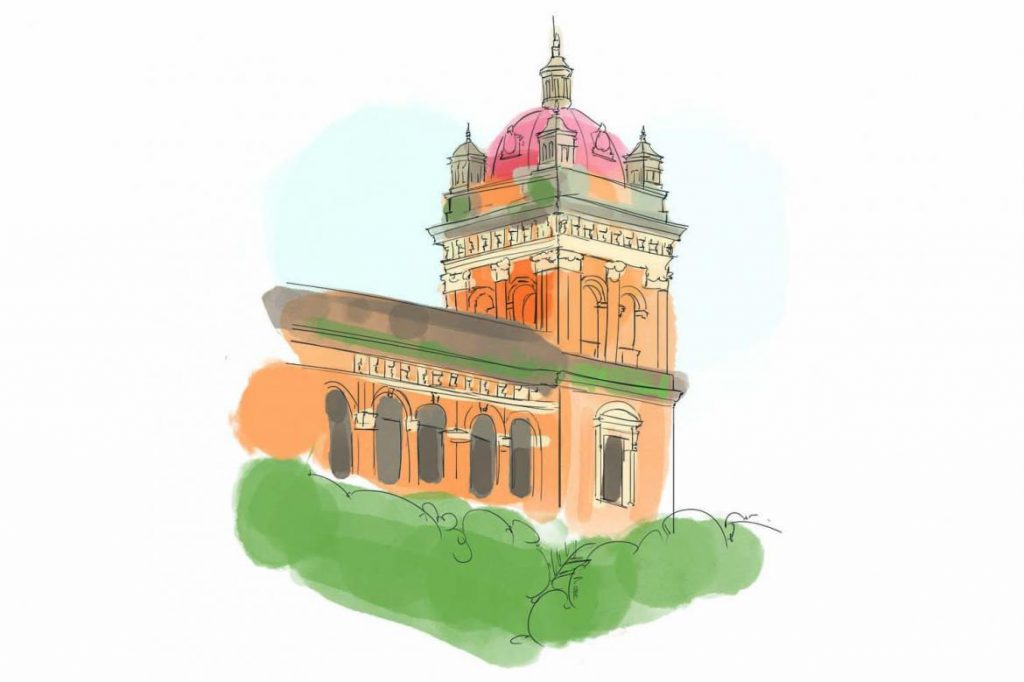 Together with the postcards he sent to my grandmother when she was studying in England, his pencil sketches of faceless figures, and a moth-eaten photo taken on his wedding day, the Secretariat was all I had to try and construct an image of him. “That’s my grandfather’s office,” I thought.